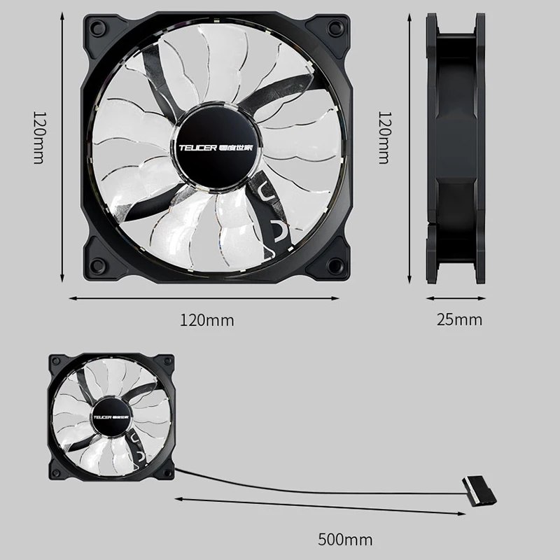 The TEUCER B12025 120mm Computer Fan delivers powerful cooling performance with vibrant rainbow RGB lighting for a striking gaming setup. Designed with a 4-pin connector for stable operation, this fan provides strong airflow to keep your system running cool during intensive gaming or heavy workloads. Its smooth, quiet performance and durable build make it an excellent upgrade for any PC case, offering both functionality and eye-catching visual appeal. Perfect for gamers, builders, and anyone looking to enhance system cooling with style.